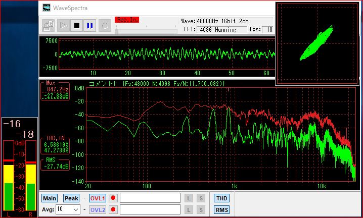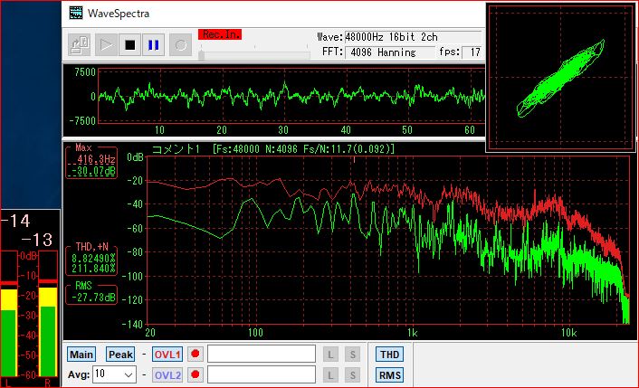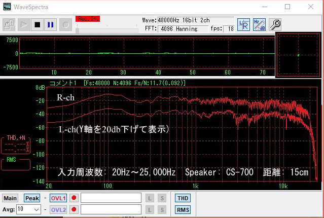 ・L-chは 20db下げて表示している。 スピーカーは Pioneer CS-700